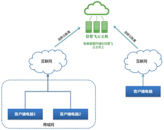 云應用模式(云賬套)是亞拓軟件推出的一種在線應用模式,軟件賬套數據存儲在信管飛云主機上,可以隨時隨地使用軟件。
