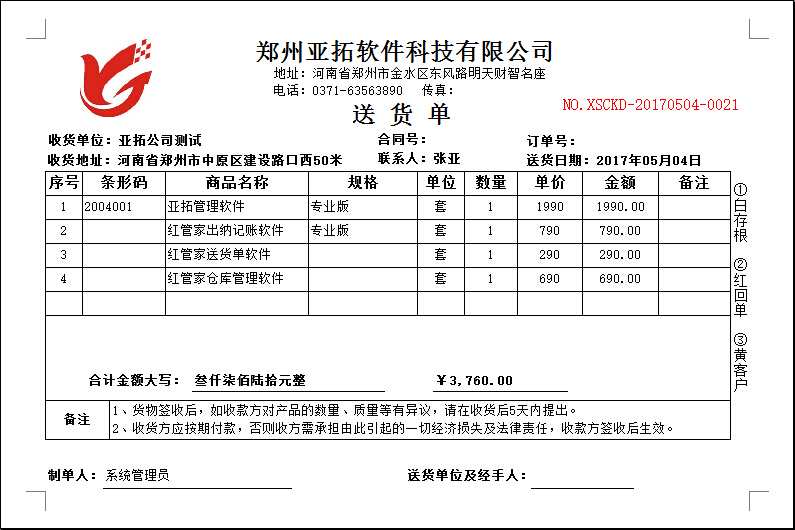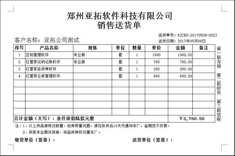 紅管家送貨單打印軟件是一款針對中小型企業(yè)開發(fā)的集送貨管理(發(fā)貨管理)、退貨管理(銷售退貨)、銷售收款(應(yīng)收款管理)等功能為