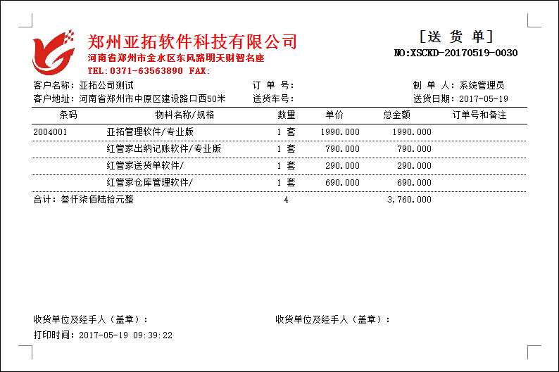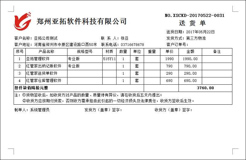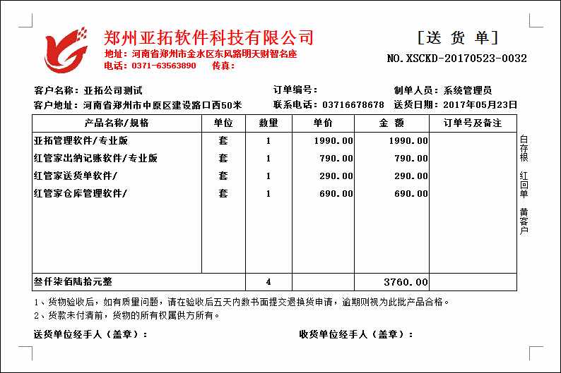 紅管家送貨單打印軟件是一款針對中小型企業(yè)開發(fā)的集送貨管理(發(fā)貨管理)、退貨管理(銷售退貨)、銷售收款(應收款管理)等功能為