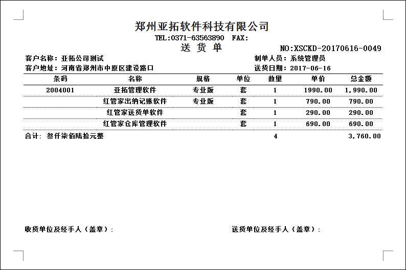 紅管家送貨單打印軟件是一款針對中小型企業(yè)開發(fā)的集送貨管理(發(fā)貨管理)、退貨管理(銷售退貨)、銷售收款(應(yīng)收款管理)等功能為