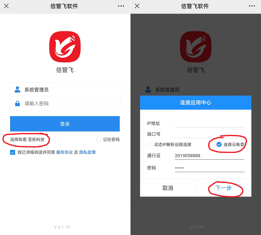 步驟一:下載安裝云賬套版(不區分軟件類型),按照安裝向導安裝軟件。安裝后點桌面上的“信管飛軟件”圖標登錄軟件。