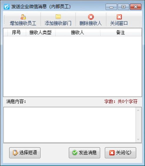 在功能導(dǎo)航窗“擴展應(yīng)用”-》“發(fā)送微信消息”,可以直接發(fā)送企業(yè)微信消息給部門或員工,消息內(nèi)容不受限制。
