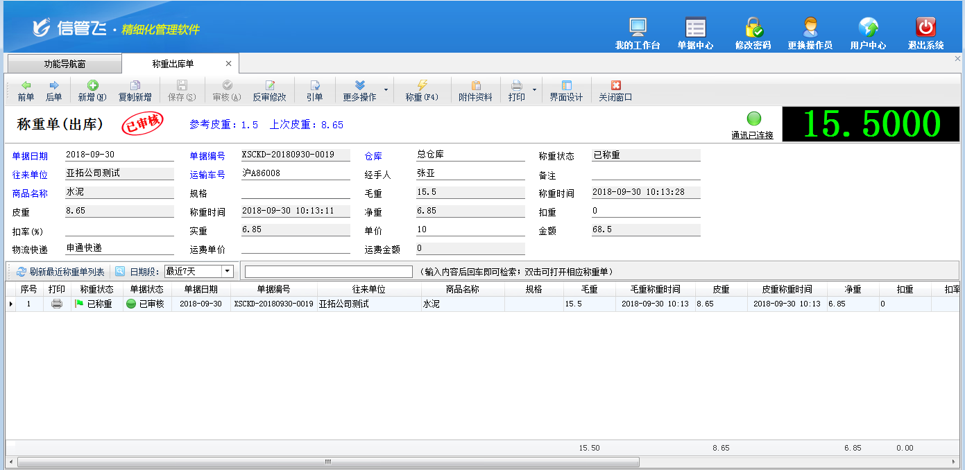 地磅稱重的典型功能截圖如下: