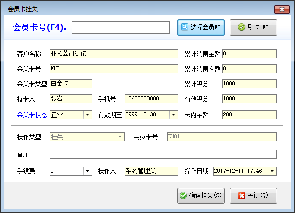 會員卡操作記錄:可以查看會員卡的操作記錄,如掛失、補卡、換卡、退卡記錄等。