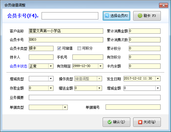 | 13 | 重算累計消費情況 | 可以重算會員卡累計消費情況(累計消費金額、累計消費次數、累計積分等)。 |
