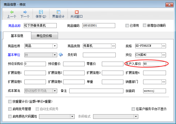 入庫單價(jià):進(jìn)入倉庫的成本價(jià),軟件默認(rèn)取商品信息中的“生產(chǎn)入庫價(jià)”,也可以設(shè)置為根據(jù)原料金額和直接費(fèi)用等核算出成本價(jià)。