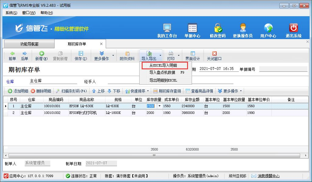 ????期初數(shù)據(jù)是指在軟件開賬日期之前的業(yè)務(wù)數(shù)據(jù)。期初庫存是軟件在開賬前需要先錄入好商品庫存信息。信管飛RMS星光版、標(biāo)準(zhǔn)版和專業(yè)版,信管飛倉庫管理軟件都包括“期初庫存單”,“期初庫存單”可以錄入不同倉庫、不同商品的期初庫存數(shù)量和成本單價(jià)等信息,實(shí)現(xiàn)了軟件在開帳前對(duì)期初庫存的高效管理。下面介紹一下進(jìn)銷存管理軟件如何錄入商品期初庫存?