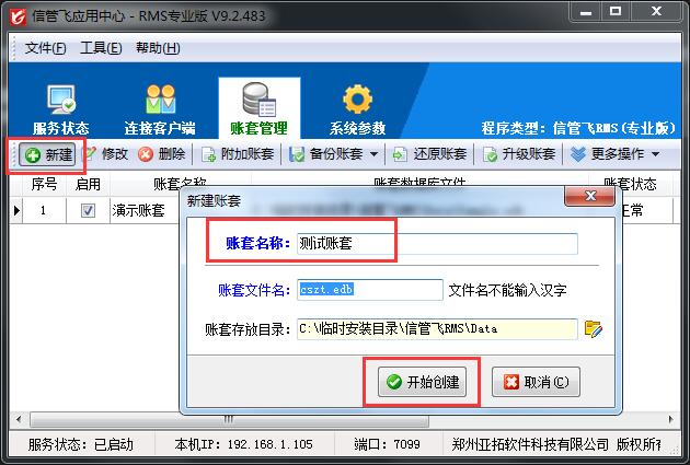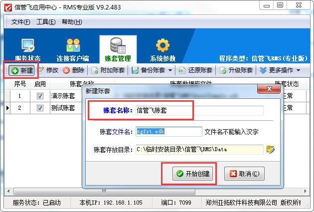 ????賬套即賬套數(shù)據(jù)庫(kù),這是一個(gè)會(huì)計(jì)業(yè)務(wù)引申出來(lái)的概念,賬套數(shù)據(jù)庫(kù)中存儲(chǔ)業(yè)務(wù)數(shù)據(jù)。使用軟件之前建議新增加一個(gè)賬套,用于重新錄入和管理數(shù)據(jù),信管飛RMS(星光版、標(biāo)準(zhǔn)版、專(zhuān)業(yè)版)、信管飛倉(cāng)庫(kù)管理軟件、信管飛出納記賬軟件、信管飛送貨單軟件、信管飛票據(jù)打印軟件等軟件的賬套都是在主機(jī)電腦的應(yīng)用中心程序上集中管理的,下面我們以信管飛RMS專(zhuān)業(yè)版為例詳細(xì)介紹下在使用軟件之前如何新增加一個(gè)賬套?