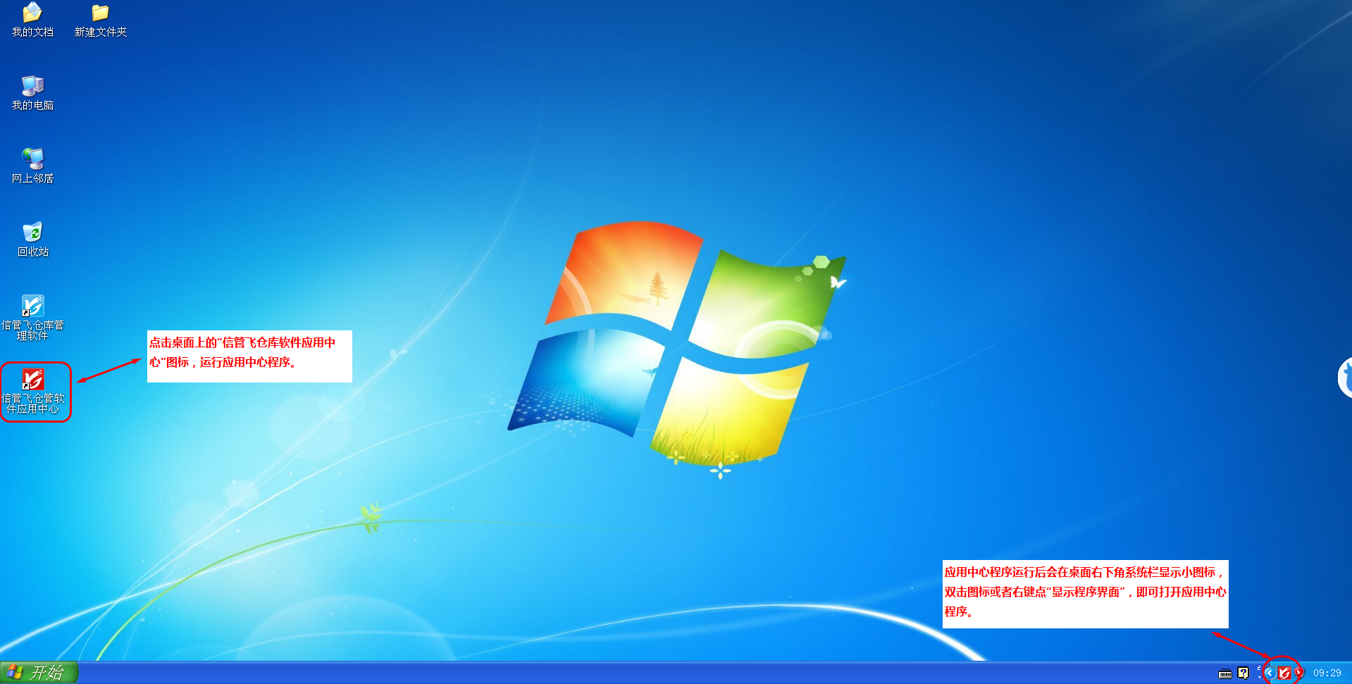 ????運(yùn)行信管飛倉(cāng)庫(kù)管理軟件應(yīng)用中心并打開(kāi)信管飛倉(cāng)庫(kù)管理軟件應(yīng)用中心程序界面,主機(jī)電腦上軟件安裝后會(huì)在桌面上自動(dòng)創(chuàng)建“信管飛倉(cāng)庫(kù)管理軟件應(yīng)用中心(紅色圖標(biāo))”及“信管飛倉(cāng)庫(kù)管理軟件即客戶(hù)端(藍(lán)色圖標(biāo))”的快捷方式,點(diǎn)擊“信管飛倉(cāng)庫(kù)管理軟件應(yīng)用中心(紅色圖標(biāo))”即可運(yùn)行信管飛倉(cāng)庫(kù)管理軟件應(yīng)用中心,如下圖所示。