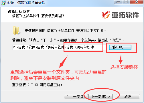 ????可把安裝程序包直接下載到桌面,安裝前需要退出應(yīng)用中心程序(桌面右下角紅色圖標(biāo)),雙擊打開(kāi)安裝程序,選擇瀏覽按鈕選擇和之前安裝路徑一致的位置進(jìn)行覆蓋安裝。(點(diǎn)擊“瀏覽”按鈕重新選擇路徑后會(huì)重復(fù)一個(gè)安裝名稱(chēng),把后邊重復(fù)的刪除下,避免安裝在新文件夾。)如下圖所示: