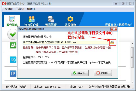 ????本文以“信管飛送貨單軟件”為例,示范下如何設(shè)置主機(jī)應(yīng)用中心程序指定更新安裝程序和客戶(hù)端如何下載安裝。