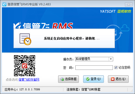 ????以信管飛RMS為例示范下,直接打開(kāi)客戶(hù)端程序,會(huì)提示“系統(tǒng)正在啟用應(yīng)用中心程序,請(qǐng)稍后...”如下圖所示: