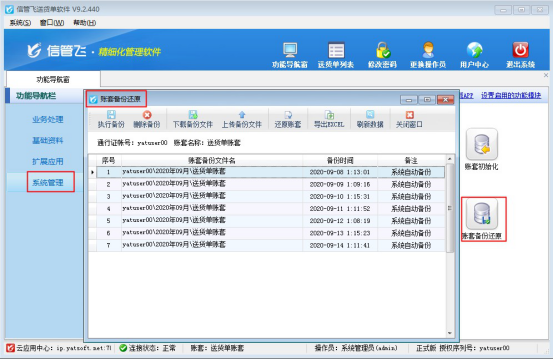 ????本文以信管飛送貨單軟件為例,介紹一下云賬套模式如何上傳本地試用數據備份文件,并還原本地備份數據?