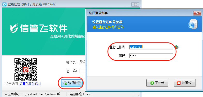 ????分別打開客戶端程序,點擊選擇賬套,分別輸入各自通行證賬號進行登錄軟件。系統會自動記憶第一次錄入的賬號和密碼,下次登錄不同軟件直接選擇桌面圖標打開登錄。