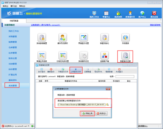 3.賬套文件的上傳和還原