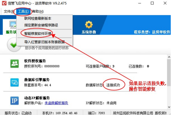 ????如智能修復(fù)軟件環(huán)境完成后,重啟應(yīng)用中心程序數(shù)據(jù)庫狀態(tài)仍顯示為連接失敗,請聯(lián)系我們在線客服解決。