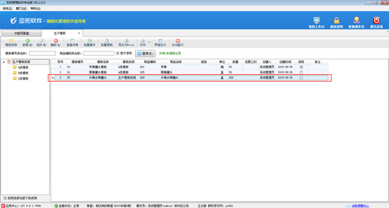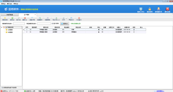 ????批量操作:在生產模板界面點工具欄中的“批量操作”按鈕,可以多選記錄,執行批量刪除操作。