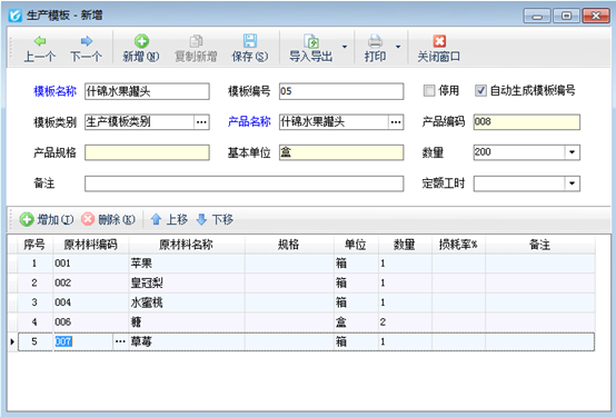 # 6.6.11 進銷存軟件中生產模板的使用方法