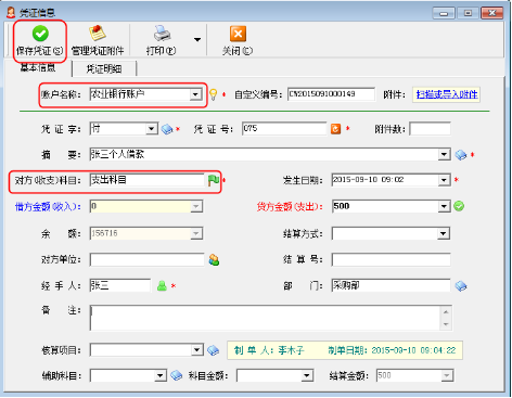 ????填寫完借款信息后點(diǎn)擊“保存借款單”,然后點(diǎn)擊“保存并記憑證”,如圖2所示,填寫憑證信息后保存憑證。
