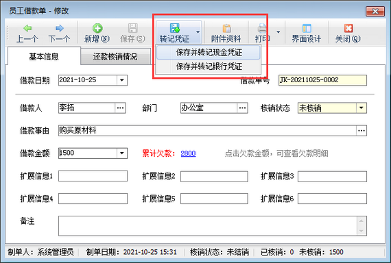 # 6.9.9 出納記賬軟件中員工借款如何轉(zhuǎn)記憑證?
