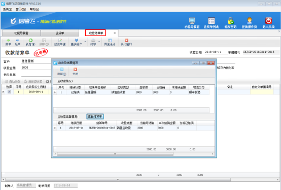 信管飛送貨單軟件開過送貨單后,會自動生成這個送貨單對應(yīng)的應(yīng)收款信息,后續(xù)收款時可以對應(yīng)收款進行收款結(jié)算。如何快速查看一個送貨單的應(yīng)收款及結(jié)銷情況呢?下面我們演示一下操作步驟。 打開一個送貨單,點擊“更多操作”—》“查看應(yīng)收款及結(jié)銷情況”,系統(tǒng)會彈出“應(yīng)收及結(jié)算情況”窗口,如下圖1、圖2所示:圖1圖2 在“應(yīng)收及結(jié)算情況”窗口,可以看到這個送貨單對應(yīng)的應(yīng)收款情況及應(yīng)收款結(jié)算情況。如果需要查看結(jié)算單詳情,可以點擊“查看結(jié)算單”按鈕,然后系統(tǒng)會自動打開“收款結(jié)算單”界面,如圖3所示:圖3&n