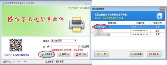 亞拓軟件旗下的信管飛RMS、信管飛倉庫管理軟件、信管飛送貨單軟件、信管飛出納記賬軟件、信管飛票據(jù)打印軟件等軟件程序安裝后會顯示兩個圖標(biāo),一個是應(yīng)用中心程序(紅色圖標(biāo)),一個是客戶端程序(藍色圖標(biāo))。這些軟件都含有賬套管理功能,在應(yīng)用中心里面可以建立多個賬套,已使用的帳套如果不再繼續(xù)使用,可以停用帳套,停用帳套后,客戶端程序登錄時無法連接該帳套。我們以信管飛送貨單軟件為例演示一下如何停用帳套。 應(yīng)用中心(紅色圖標(biāo))打開后會在電腦的右下角顯示,雙擊打開電腦右下角的應(yīng)用中心圖標(biāo),點擊“帳套管理”,如圖1所示,帳套列表一共有3個