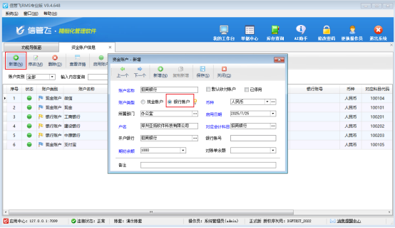 許多用戶在使用軟件記賬時(shí)都會(huì)問(wèn)到一個(gè)問(wèn)題:如何新增現(xiàn)金賬戶和銀行賬戶?本節(jié)我們以信管飛RMS專業(yè)版來(lái)介紹一下進(jìn)銷存軟件內(nèi)如何新增資金賬戶? 在功能導(dǎo)航窗點(diǎn)擊“基礎(chǔ)資料”—“資金賬戶”打開(kāi)資金賬戶信息界面,點(diǎn)擊工具欄中的“新增”按鈕,在彈出的“資金賬戶—新增”窗口錄入賬戶名稱、勾選賬戶類型“現(xiàn)金賬戶”、期初余額及其他相關(guān)信息后點(diǎn)擊“保存”按鈕即可保存到系統(tǒng)內(nèi),如下圖 點(diǎn)擊工具欄中的“新增”按鈕,在彈出的“資金賬戶—新增”窗口錄入賬戶名稱、勾選賬戶類型“