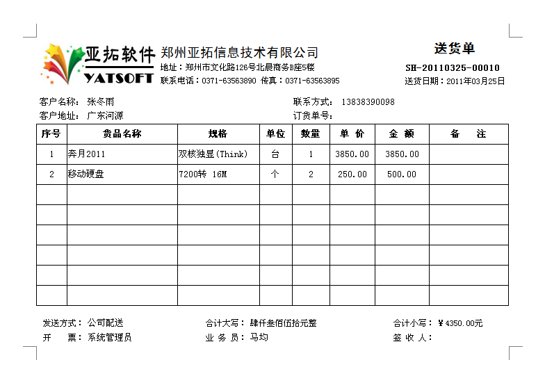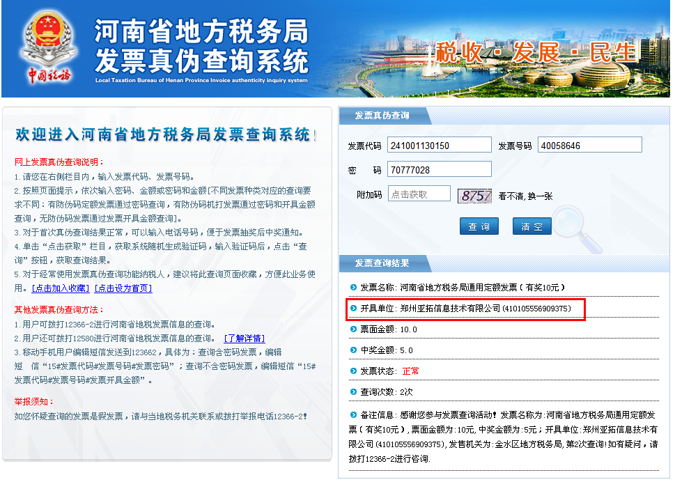 我公司已支持開具機打發票,詳細請見: 有關開具發票及真偽查詢等事項的說明【2013版】 亞拓軟件(全稱:鄭州亞拓信息技術有限公司)是注冊于河南省鄭州市金水區的一家軟件技術服務公司,核定經營范圍為:計算機軟件開發與技術咨詢服務,注冊資金50萬元,旗下擁有“亞拓”、“紅管家”、“好好用”、“銷售寶”等多個產品品牌,開發進銷存管理軟件、出納記賬管理軟件、售后服務管理軟件等企業管理系統,并自主研發了基于通信軟交換機技術的協作通信應用平臺,為深圳、武漢、北京等地數十家軟件企業提供技術輸出與咨詢服務。 工商注冊信息可以在鄭州市工商局網