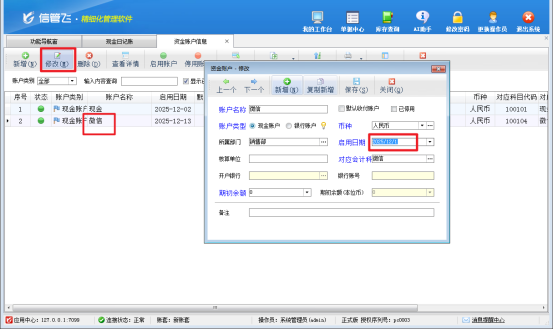 在財務信息化進程中,出納記賬軟件是提升工作效率、保障財務數據準確性的重要工具。但在實際操作里,不少用戶會遇到這樣一個狀況:登記日記賬憑證時,系統默認取電腦操作系統日期作為憑證發生日期;當需要補錄出納憑證并修改日記賬憑證的發生日期后,保存時系統會彈出“發生日期小于賬戶的啟用日期,請修改后再保存!”的提示,導致操作無法繼續。三步輕松解決! 只需調整賬戶的啟用日期,讓它早于您要補錄的憑證日期即可,操作超簡單:第一步:進入資金賬戶設置 打開軟件,