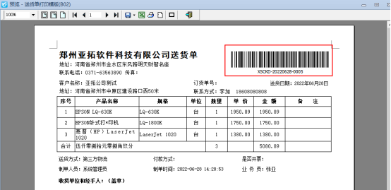 信管飛系列軟件支持自定義設計打印模板,有用戶需要打印模板的單據編號以條形碼形式進行顯示,本文以“信管飛送貨單軟件”為例示范下如何添加? 功能導航窗點擊“業務處理”—》“新開送貨單”,新增并保存一張送貨單單據,工具欄“打印”下點擊“打印格式設計”,在打印格式設計界面選擇模板點擊“設計格式”進入打印模板設計器界面,示例模板:送貨單打印模版(B02),如下圖所示: 內置模板單據編號是文本框顯示,預覽圖如下圖所示: &nbs