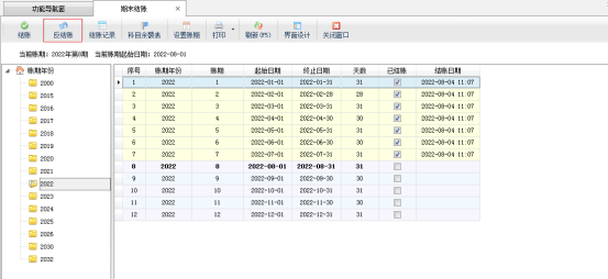 信管飛專業版內包含的有財務處理模塊,其中當本期(即本月)的業務已審核處理完畢,就可以進行期末結賬操作。結賬后如果發現單據錯誤或者是賬簿數據有誤,需要重新進行修改,可以在期末結賬中進行反結賬操作。本篇文章我們來介紹一下期末結賬內反結賬功能如何使用? 在功能導航窗點擊“財務處理”—“期末結賬”,系統可以打開期末結賬界面。 反結賬只能按期(即按月)進行結賬,反結賬后自動進入上一個賬期(月份),1月份反結賬后將進入上一個年度。反結賬后可以對業務單據進行修改,