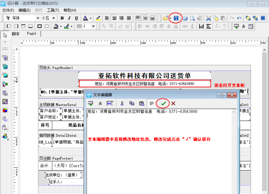 信管飛送貨單軟件、信管飛RMS軟件、信管飛倉庫管理軟件等都支持開銷貨單和打印單據,軟件內置了十幾種打印模板,默認模板公司信息打印調取“系統參數”中設置的內容,有客戶自定義設計模板時公司信息直接添加到模板中,后期如果單位地址變更打印模板顯示不對需要如何修改?針對以上兩種情況,本文以“信管飛送貨單軟件”為例示范下如何修改。 視頻觀看鏈接:使用單位地址變更打印模板如何修改? 一、默認模板,公司地址調用系統參數使用單位信息中的內容,模板設計界面(開單界面打印