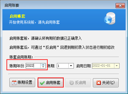 信管飛RMS軟件、信管飛倉庫管理軟件支持多賬套管理,新建賬套登錄是未啟用狀態,新開單時需要啟用賬套,默認啟用賬期是2021-1-1,如果需要從2022-1-1開始,需要修改啟用賬期,本文示范下如何修改賬套啟用賬期? 在應用中心程序賬套管理中新建新賬套后,登錄客戶端程序,選擇新建賬套進行登錄軟件,新賬套登錄是未啟用狀態,在功能導航窗點擊“基礎資料”—》“期初建賬”,在期初建賬界面點擊“啟用賬套”如下圖所示: 打開“啟用賬套”,選擇賬期年份修改,修改后點