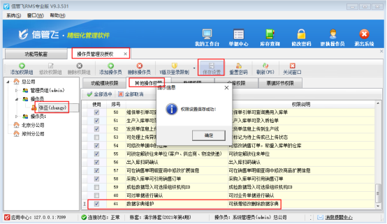 信管飛RMS軟件支持把一列常見內容可提前維護到一個數據字典中,方便開單時候直接選擇錄入,例如“結算方式”,為避免設置多個操作員登錄軟件隨意修改,信管飛RMS軟件可控制操作員的數據字典維護權限,本文示范下如何操作? 軟件默認操作員沒有勾選“數據字典維護”權限,使用此操作員登錄,在新開單據界面。打開“結算方式”,點擊“維護”,會提示“您沒有數據字典維護權限,請與系統管理員聯系!”如下圖所示: 如果需要操作員可以修改“數據字典”,在系統管理—》操作員及授權