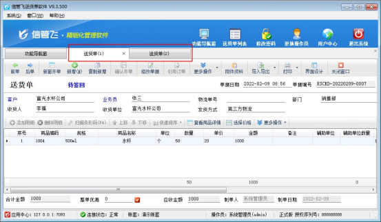 信管飛送貨單軟件、信管飛RMS 軟件等都支持開(kāi)銷售單以及自動(dòng)匯總已開(kāi)的銷售單,軟件默認(rèn)是開(kāi)單只能打開(kāi)一張新開(kāi)單據(jù)界面,保存后打開(kāi)之前記錄默認(rèn)只能打開(kāi)一張。有客戶存在需要同時(shí)打開(kāi)兩張銷售單的情況,軟件如何同時(shí)打開(kāi)兩張單據(jù)可參考以下示范。 需要同時(shí)打開(kāi)多張送貨單,需要設(shè)置下參數(shù),在功能導(dǎo)航窗點(diǎn)擊“系統(tǒng)管理”—》“系統(tǒng)參數(shù)配置”,在業(yè)務(wù)參數(shù)中,勾選啟用參數(shù)“銷售單允許多窗口開(kāi)單”,參數(shù)值可自己設(shè)置可同時(shí)打開(kāi)的數(shù)字(3表示可同時(shí)打開(kāi)三個(gè)界面),保存設(shè)置,如下圖所示: &n