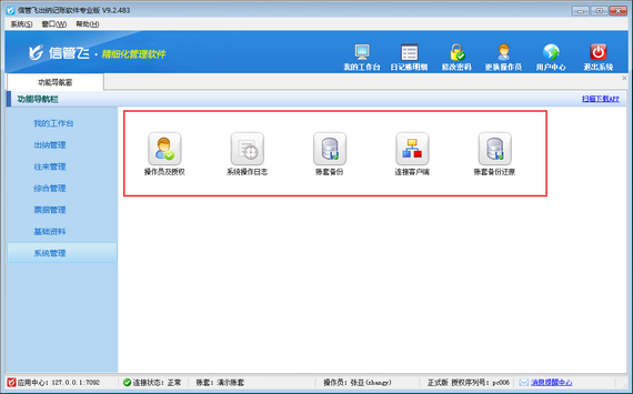 信管飛軟件系列產品都支持靈活配置業務參數(如下圖所示),系統參數設置可以設置使用單位信息、業務參數以及出納參數,用戶可根據自身業務特點進行參數配置。為了避免操作員誤調整參數配置,軟件支持設置操作員調整參數配置權限,本文介紹下出納記賬軟件中如何設置操作員不可調整系統參數配置? 登錄軟件,在功能導航窗點擊“系統管理”—》“操作員及授權”,進入“操作員管理及授權”界面,選擇操作員“張亞”,在其右側的功能模塊權限內選擇“系統管理”模塊,將系統參數配置的“使用”權限勾選取消,然后保存設置,如下圖所示。 &nb