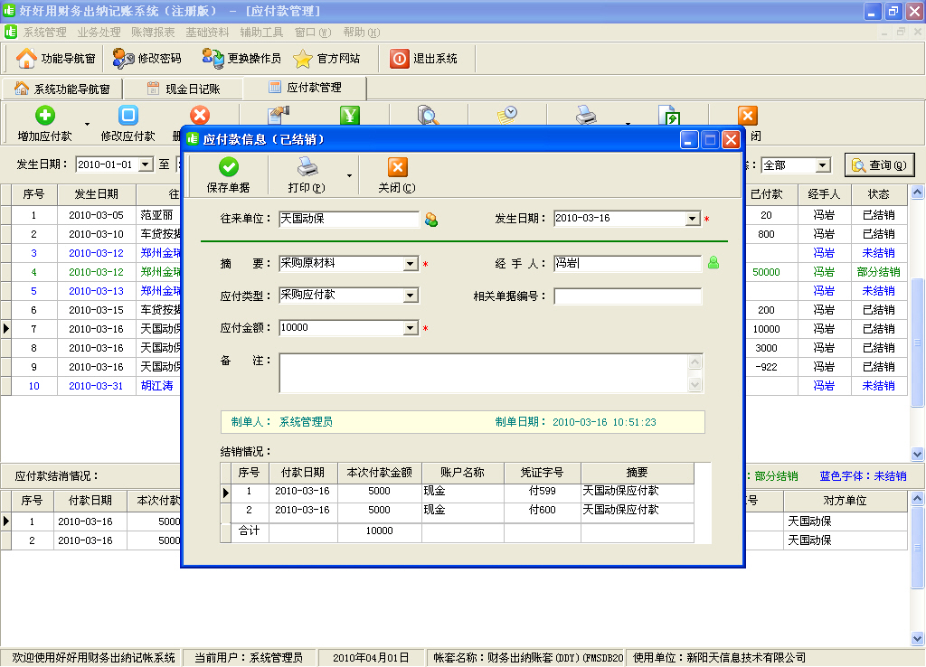 2、獨有應收應付款雙向核銷機制,通過建立定期應收應付,讓你未雨綢繆,及早掌控財務方向