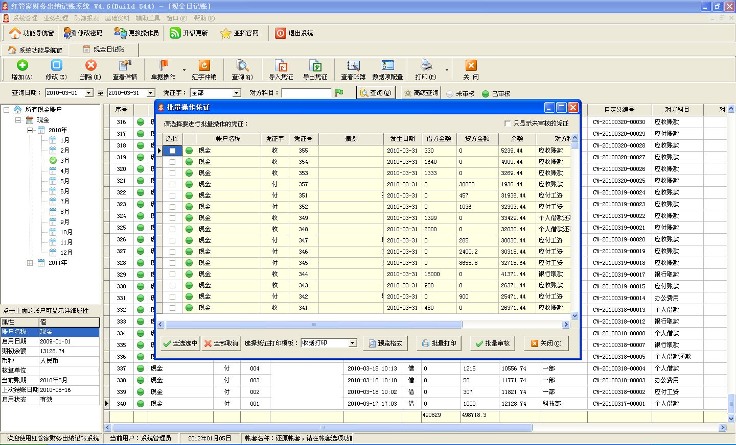 2、現(xiàn)金日記賬和銀行日記賬支持批量審核和批量打印。