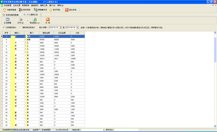 好好用財務出納記賬系統(tǒng)發(fā)布V2.6(Build 374)下載地址:http://www.yatsoft.com/download/FPSetup_Msde.exe更新內容:(2010-09-06)1、解決英文操作系統(tǒng)或未采用默認日期格式,比如日期間隔符采用/(2010/9/6)時,新增憑證、新增應收應付款時報錯的問題。2、個人借款統(tǒng)計,增加欠款統(tǒng)計功能,此功能與個人借款匯總功能的不同在于:欠款情況