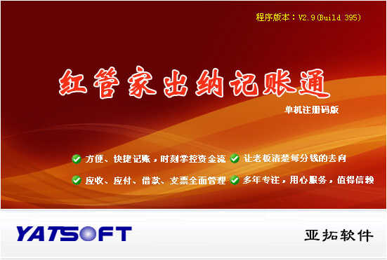 隨著國慶假期接近尾聲,亞拓軟件發(fā)布一款出納軟件新產(chǎn)品——紅管家出納記賬通,該系統(tǒng)界于好好用出納記賬系統(tǒng)和好好用出納日記賬系統(tǒng)之間,功能比較實用、易用,是亞拓公司三大產(chǎn)品品牌之一(好好用、亞拓、紅管家)。鑒于此前安裝程序自帶的數(shù)據(jù)庫引擎MSDE在部分機器上無法安裝,且安裝包較大,我們這次將紅管家出納記賬通安裝程序中集成了一款小巧綠色的數(shù)據(jù)引擎(整個安裝包共13MB),方便大家安裝。紅管家