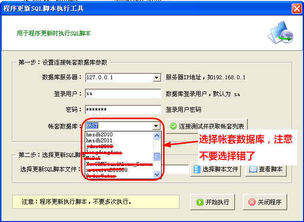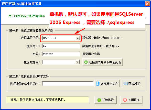 第二步、點(diǎn)擊“程序更新SQL腳本執(zhí)行工具”,進(jìn)入更新腳本窗口: