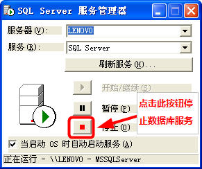 3、在SQL Server服務管理窗口,點擊“停止”按鈕即可。
