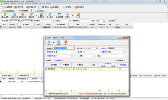 這時(shí)我們可以關(guān)閉此窗口,然后點(diǎn)擊下方的應(yīng)收款結(jié)銷情況中的“查看收款單”按鈕,可以在收款單頁面看下收款單的單據(jù)編號(hào)并記錄下,或者是將收款單號(hào)復(fù)制一下,如圖二所示。