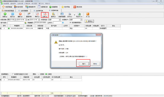 此時(shí)如果真的確實(shí)需要?jiǎng)h除此收款單的話,可以點(diǎn)擊“反審”按鈕進(jìn)行反審操作,將此單據(jù)反審至未審核的狀態(tài),然后就可以進(jìn)行刪除操作了,如下圖六所示。