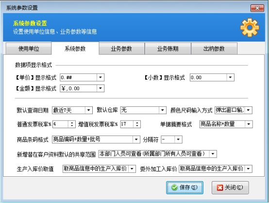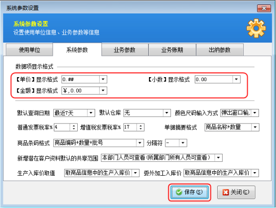 在系統(tǒng)參數(shù)中對(duì)“單價(jià)”、“小數(shù)”(數(shù)量)、“金額”選擇相應(yīng)的顯示格式后點(diǎn)擊“保存”按鈕即可,在軟件中這些數(shù)據(jù)項(xiàng)的顯示格式會(huì)改變。如圖3所示設(shè)置后,在圖4的銷售出庫(kù)單可看到相應(yīng)的數(shù)據(jù)項(xiàng)的顯示格式。