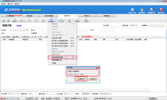 另外也可以在相應單據開單頁面的工具欄內點擊“更多操作”——》“調出指定單據編號”,同樣可以快速打開相應的單據。如下圖二所示。