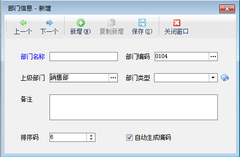 新增部門:增加部門信息,復制新增可以復制當前的部門進行修改后保存。