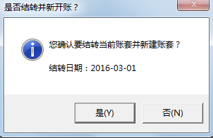 點(diǎn)擊主窗口菜單“系統(tǒng)管理”—》“結(jié)轉(zhuǎn)新開賬”菜單項(xiàng),系統(tǒng)彈出結(jié)轉(zhuǎn)新開賬界面,如下圖1所示: