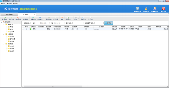 合同管理是屬于客戶關系管理模塊,客戶關系管理模塊是屬于擴展模塊,只有在亞拓管理軟件標準版和專業版中才能使用,下面我們來演示一下具體的操作步驟。