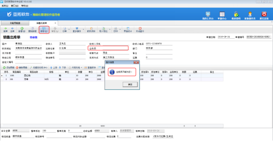 亞拓管理軟件、紅管家倉庫管理軟件開銷售單保存時業務員默認不能為空,如圖1所示;亞拓管理軟件、紅管家倉庫管理軟件開采購單保存時經手人默認不能為空;紅管家送貨單軟件開送貨單保存時業務員也默認不能為空。如果您在開銷售單或采購單時不需要錄入業務員或經手人,可以在軟件中進行設置。